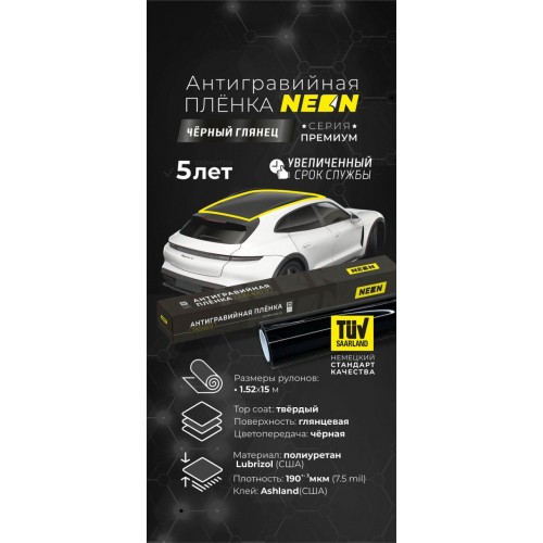 Модель: Полиуретановая пленка Neon Стандарт Черный глянец 1,52х15м